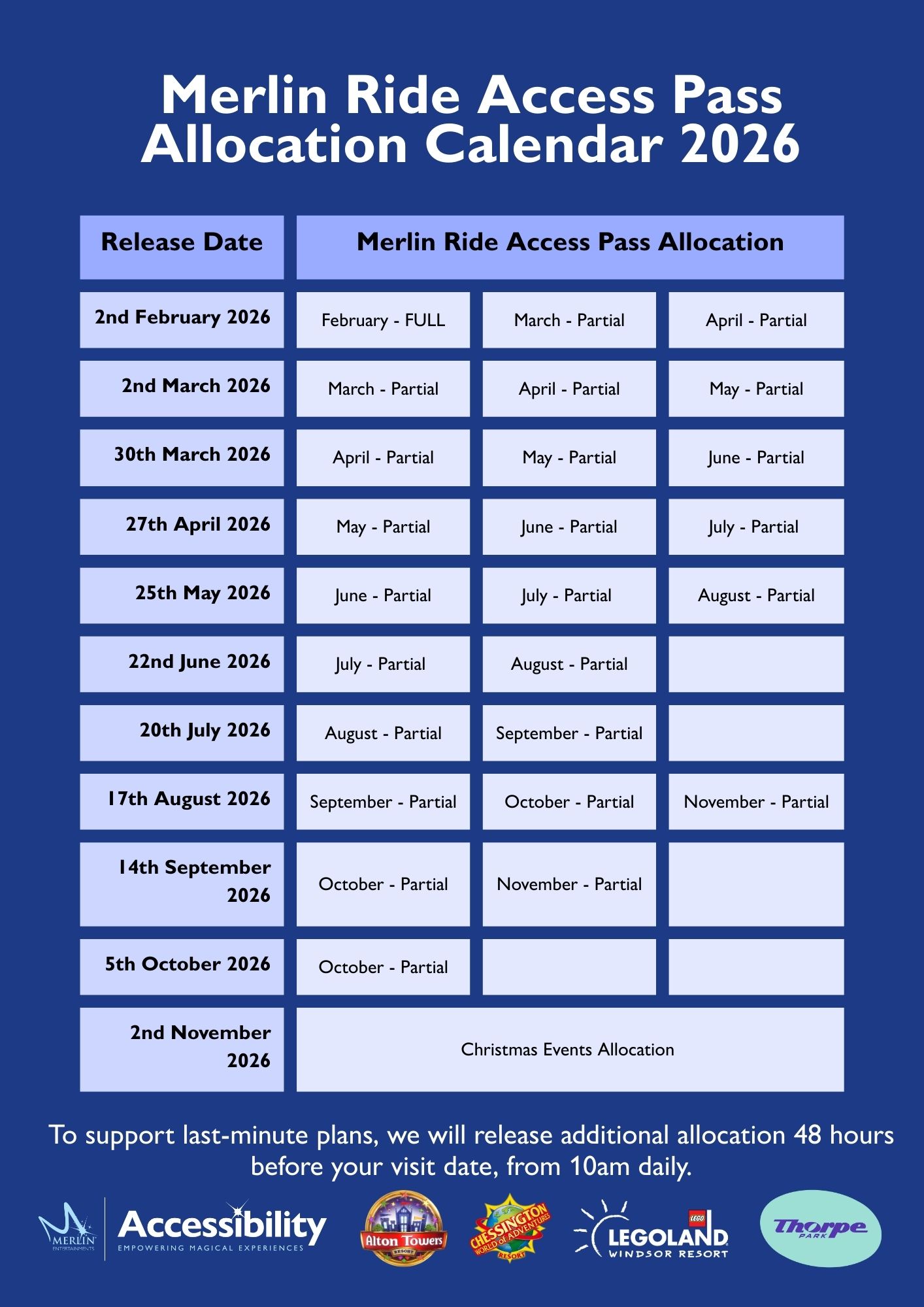 - Merlin partners with Nimbus Disability (“Nimbus”), one of the UK’s leading providers of disability-related advice and support to professional organisations, to assess applicants’ needs and determine eligibility for a RAP. Nimbus will provide a focused assessment of an individual person and the barriers they may face which affect their ability to queue. Applicants will be asked to provide any documentation and details to support their application.