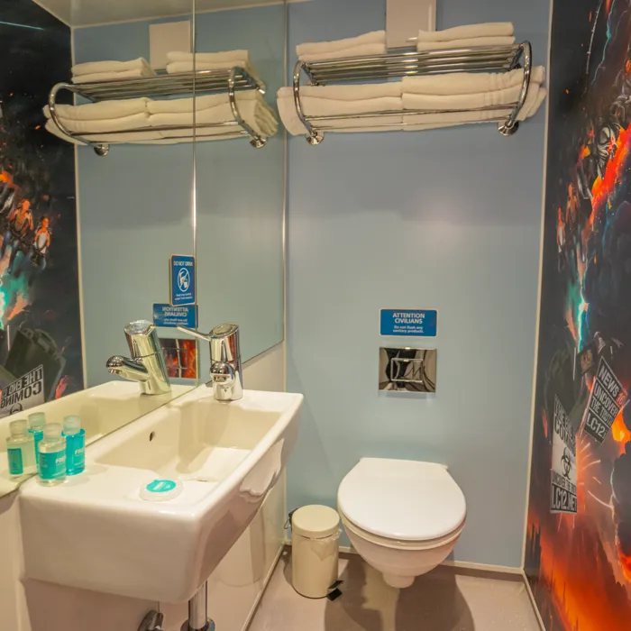 Quirky, compact, and oh-so-cosy, our theme park hotel is perfect for an epic theme park holiday or UK short break. Each cabin is packed with all the essentials you need for an unforgettable staycation, including a super comfy double bed and bunk bed, an interactive TV with Freeview and Thorpe Park info channels, bottled water, hot drink making facilities and colour-changing mood lighting.